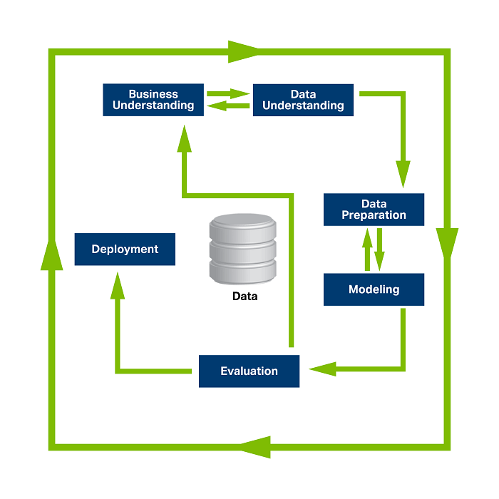 We use industry proven CRISP – DM for data mining and predictive analytics solutions. The CRoss Industry Standard Process for Data Mining (CRISP-DM) is a process model with six phases – Business understanding, Data understanding, Data preparation, Modeling, Evaluation and Deployment.